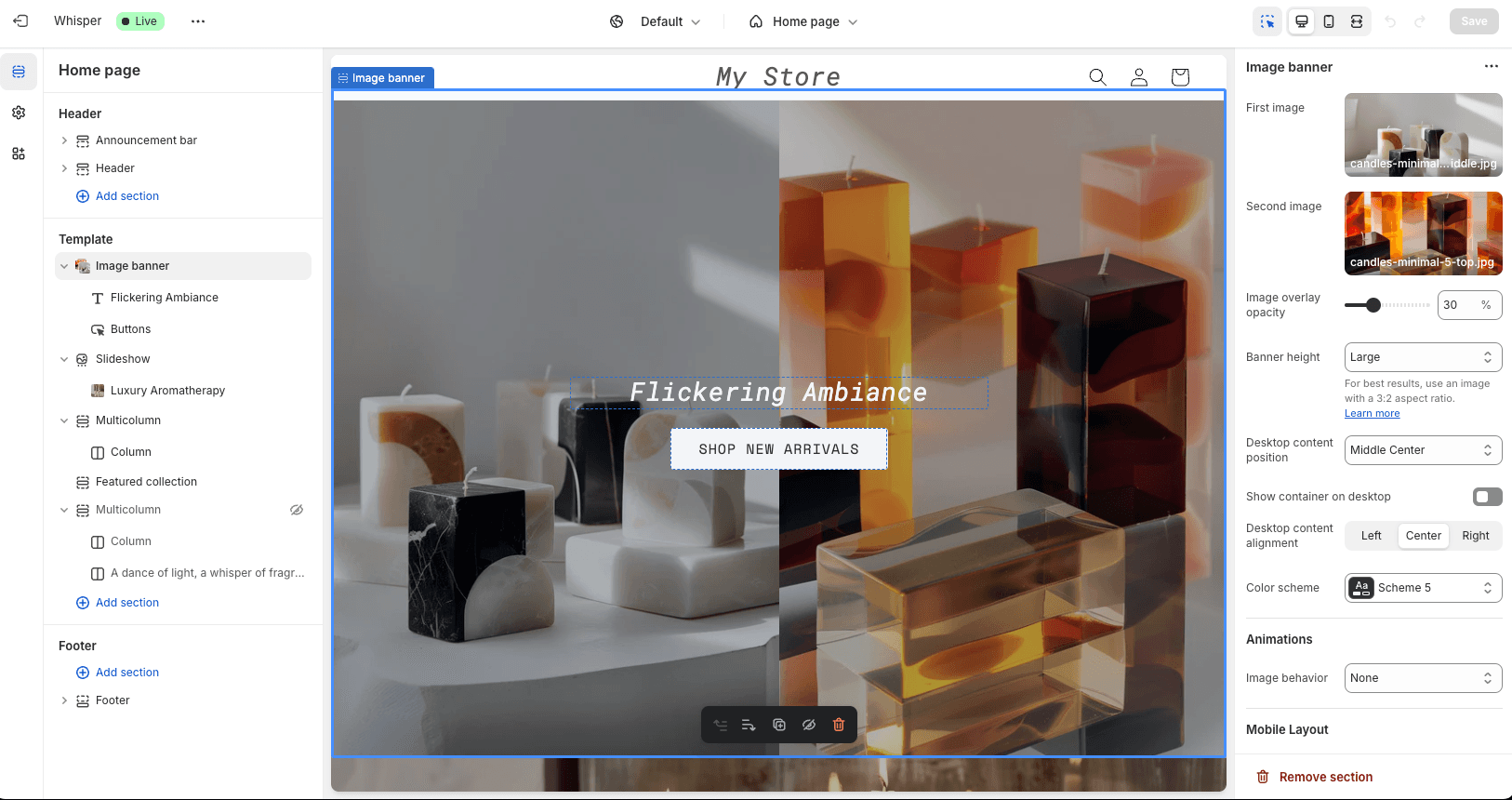 - They could have an opaque image of the user's store as the background, again instilling that feeling of inspiration.